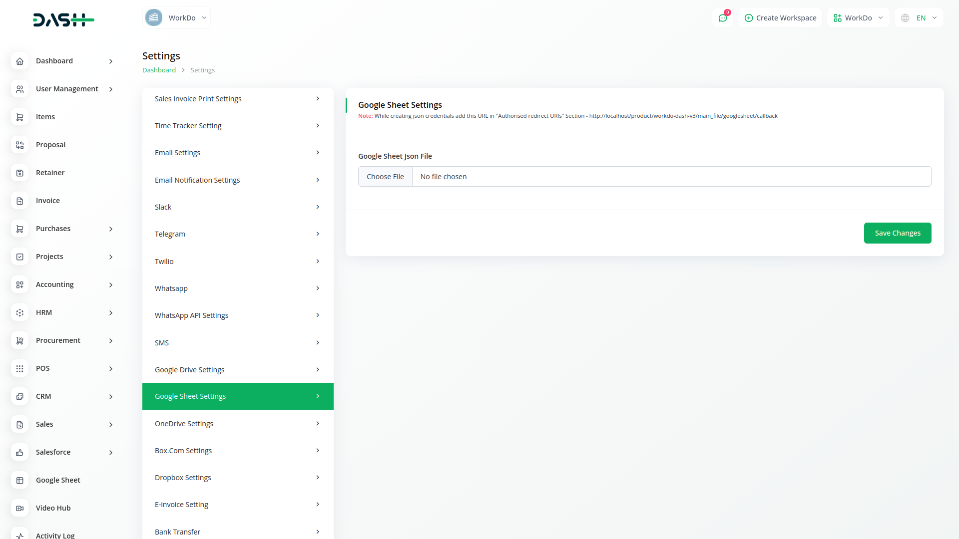 1. Upload your credentials json file in (System Settings->Google Sheet Settings).